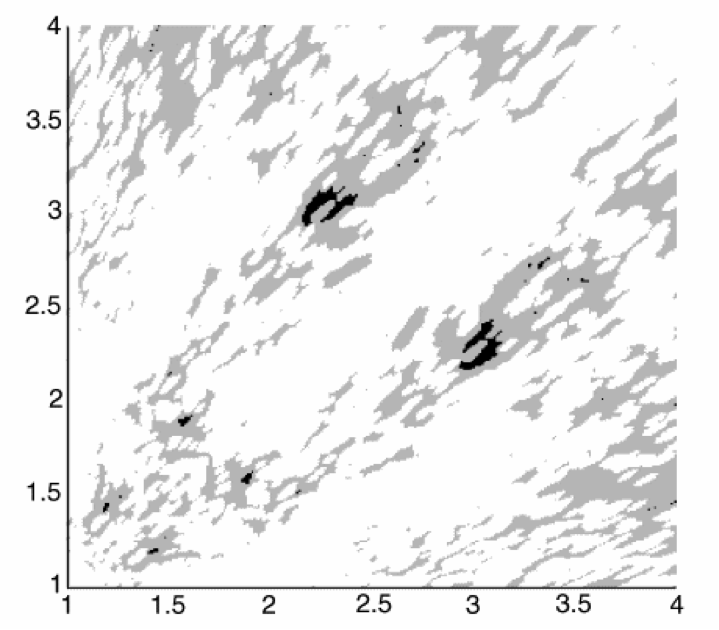 Prof Trevor Cox of Salford University has done extensive research in this area, and has produced the following detailed diagram to show how bass resonance changes as the ratio of length to width to height changes. The light areas denote strong bass resonance and the dark areas weak bass resonance. As you can see, there are very few room ratio combinations that exhibit the desired level of weak bass resonance.