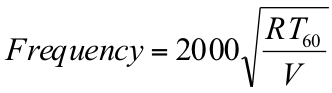 This equation is used (in a simplified form) to calculate the lowest mode of a room. This is the lowest frequency at which resonance can occur in the room. Below this frequency, resonance is not possible because the wavelength of sound is simply too big to fit within the dimensions of the room.
